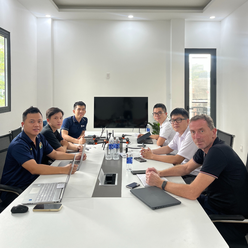During the meeting, XBStation representatives, including Mr. Phung Thanh Trinh (Founder/CEO), Mr. Le Van Day (Engineer), and Mr. Ngo Duc Nhan (Co-Founder), engaged in an in-depth discussion with the delegation. The conversation primarily focused on developing auxiliary components and integrated solutions for drone and UAV applications.